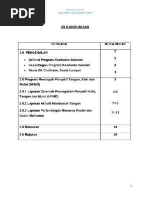 1Malaysia PS1M yang telah dimulakan oleh Kementerian Pendidikan Malaysia. Documents Similar To Laporan Program Kesihatan Sekolah. Sekolah kebangsaan penghulu ahmad kedah darul aman kertas kerja program alam sekitar udara bersih hidup sihat tarikh 11 13 mac 2017 tempat sk penghulu ahmad disediakan oleh fatin syazwani binti shani anjuran persatuan alam sekitar sk penghulu ahmad program alam sekitar page 1 isi kandungan 10 kertas kerja program pendidikan kesihatan 3 udara bersih hidup.